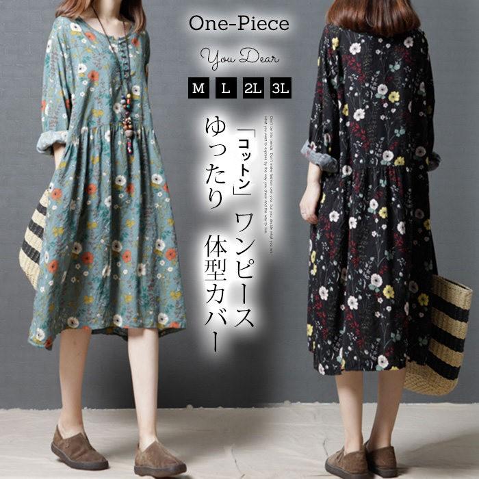 ワンピース コットン 綿 レディース ロングワンピース 体型カバー 花柄ワンピース ゆったり シャツワンピース 長袖 秋 大人 可愛い 着痩せ 大きいサイズty123 Cxj Ty123 Youdear 通販 Yahoo ショッピング